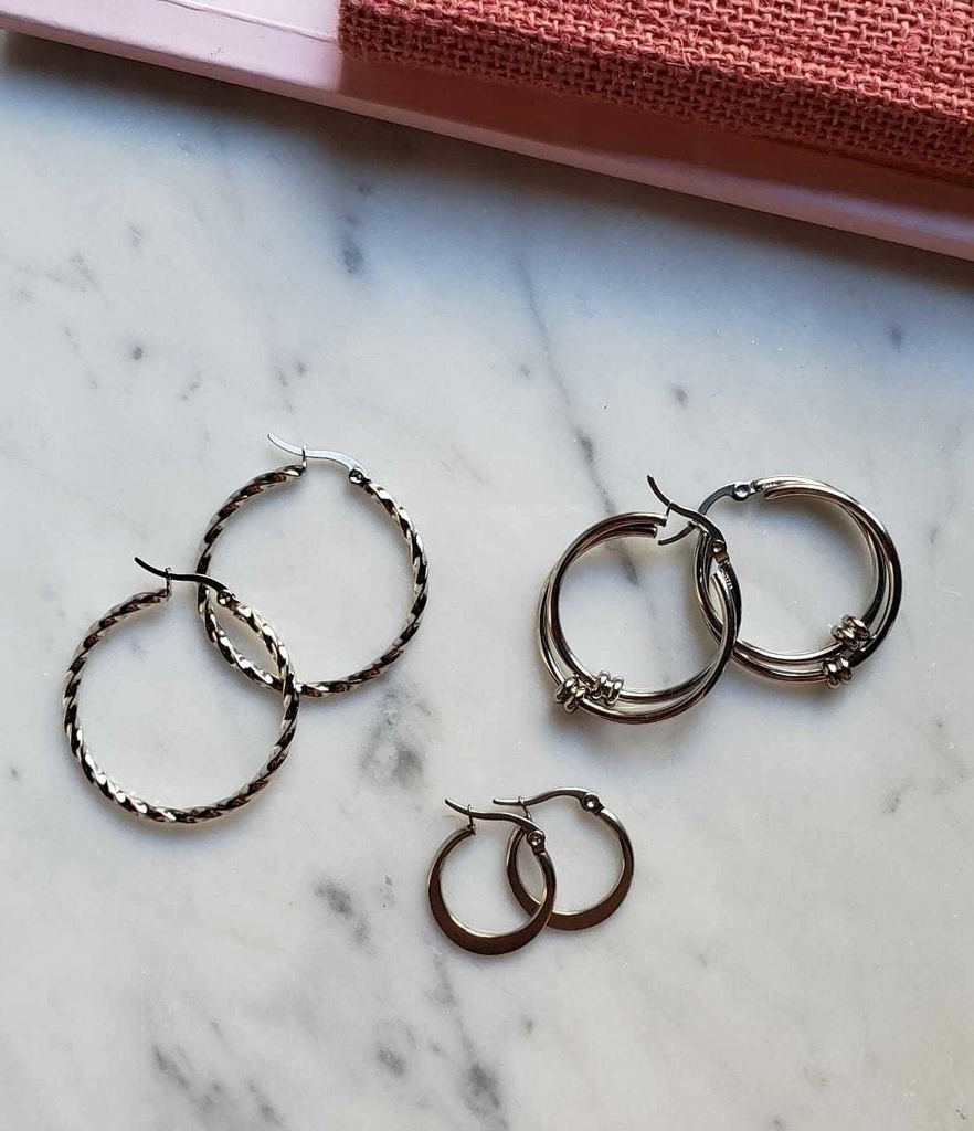 1 par de aros argolla torzada de acero quirurgico de 3,5cm de diametro.