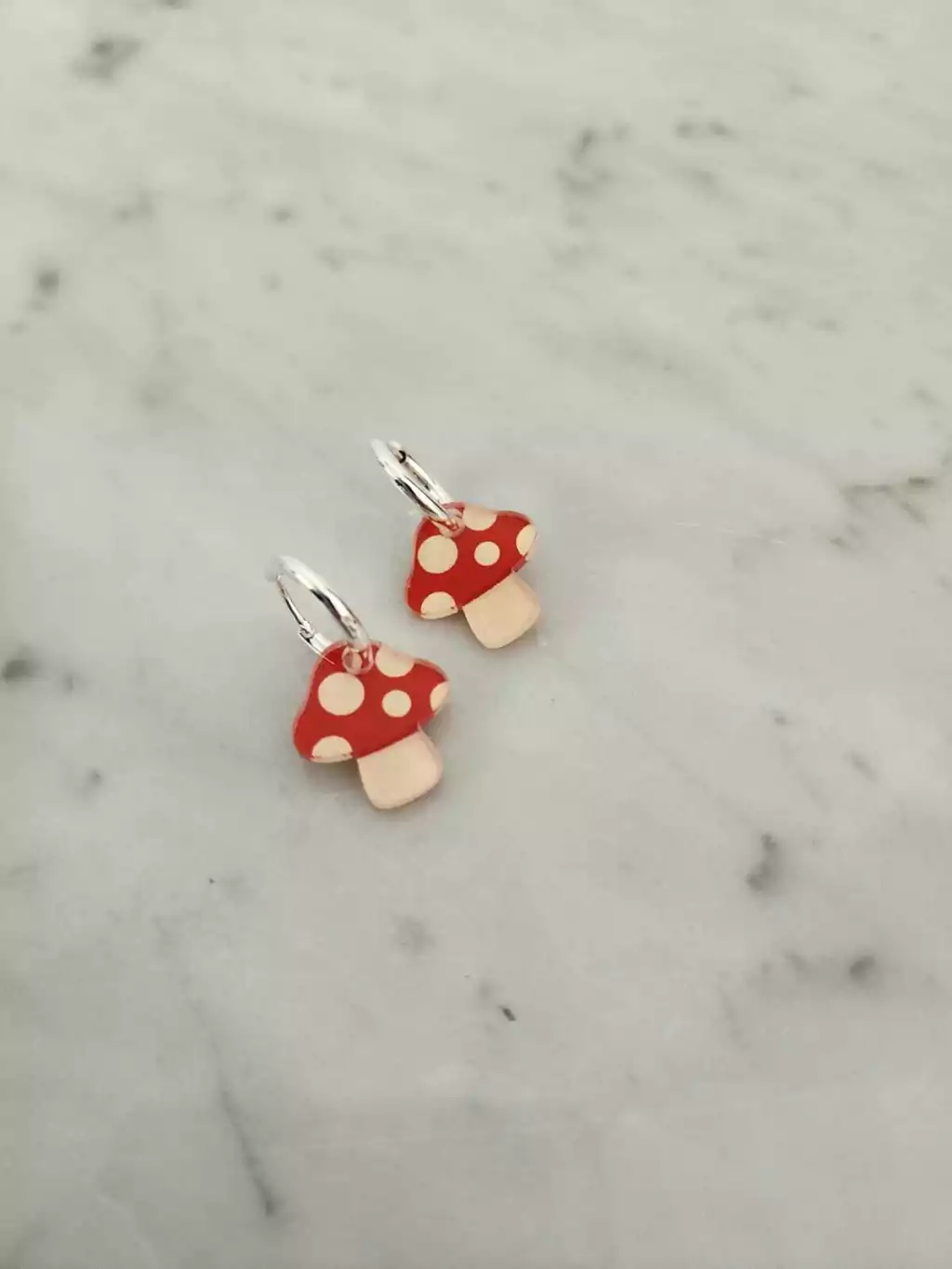 Aritos argolla de acero quirurgico de 1cm de diametro aprox. y honguito de acrilico