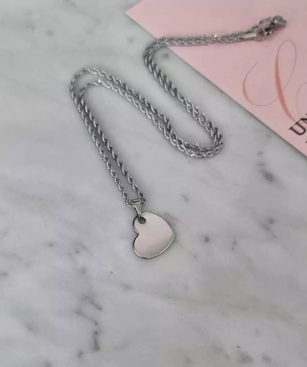 La cadena de acero quirurgico tiene 50cm de largo en total y el dije que tambien es de acero quirurgico es un hermoso corazon chato que te va a quedar divino con todos tus looks!