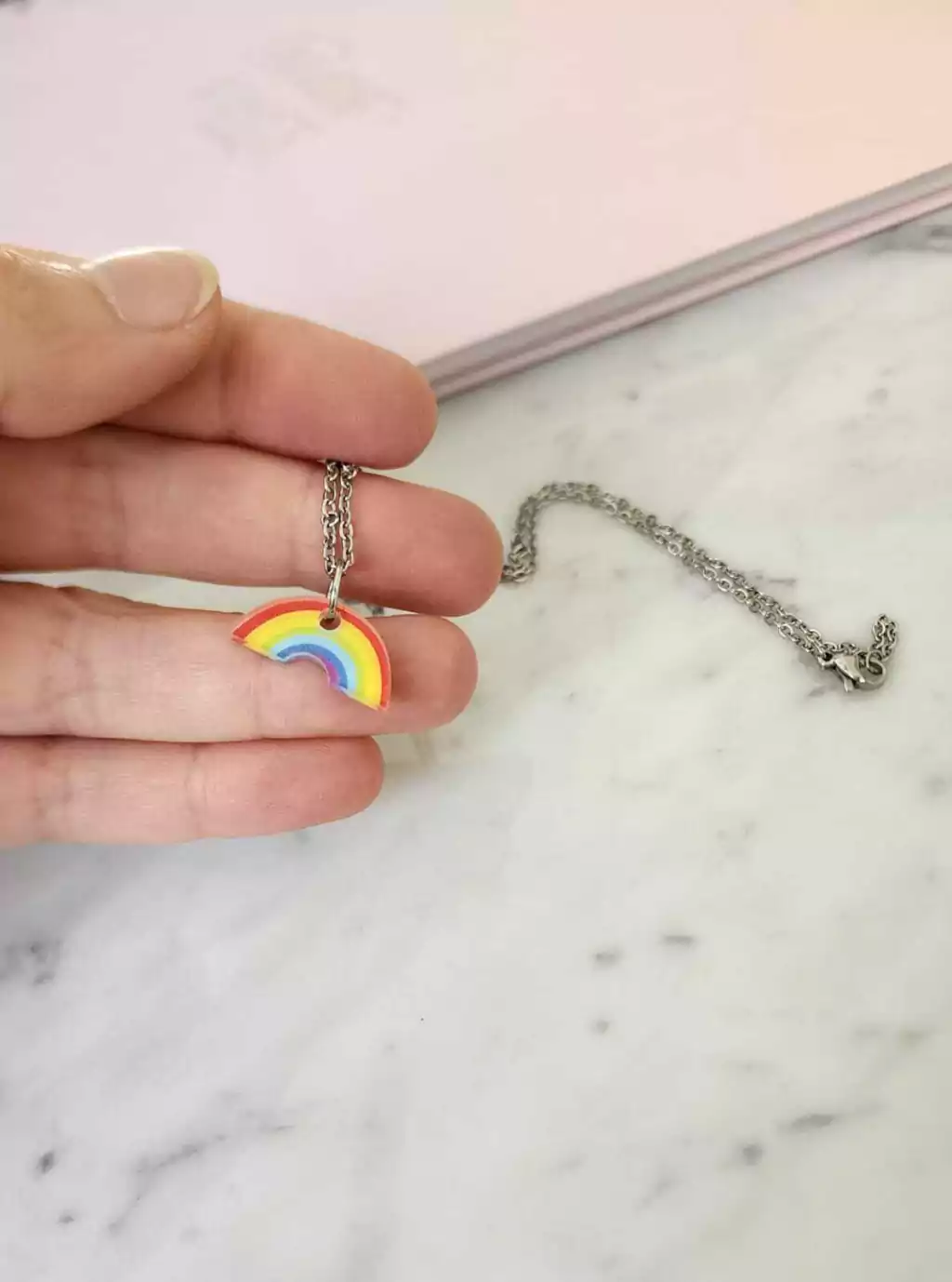 Collar de acero quirurgico de 50cm de largo con dije en forma de Arcoiris de acrilico