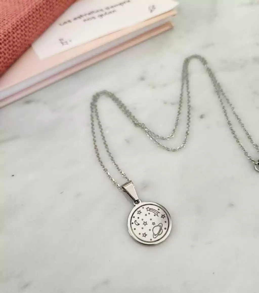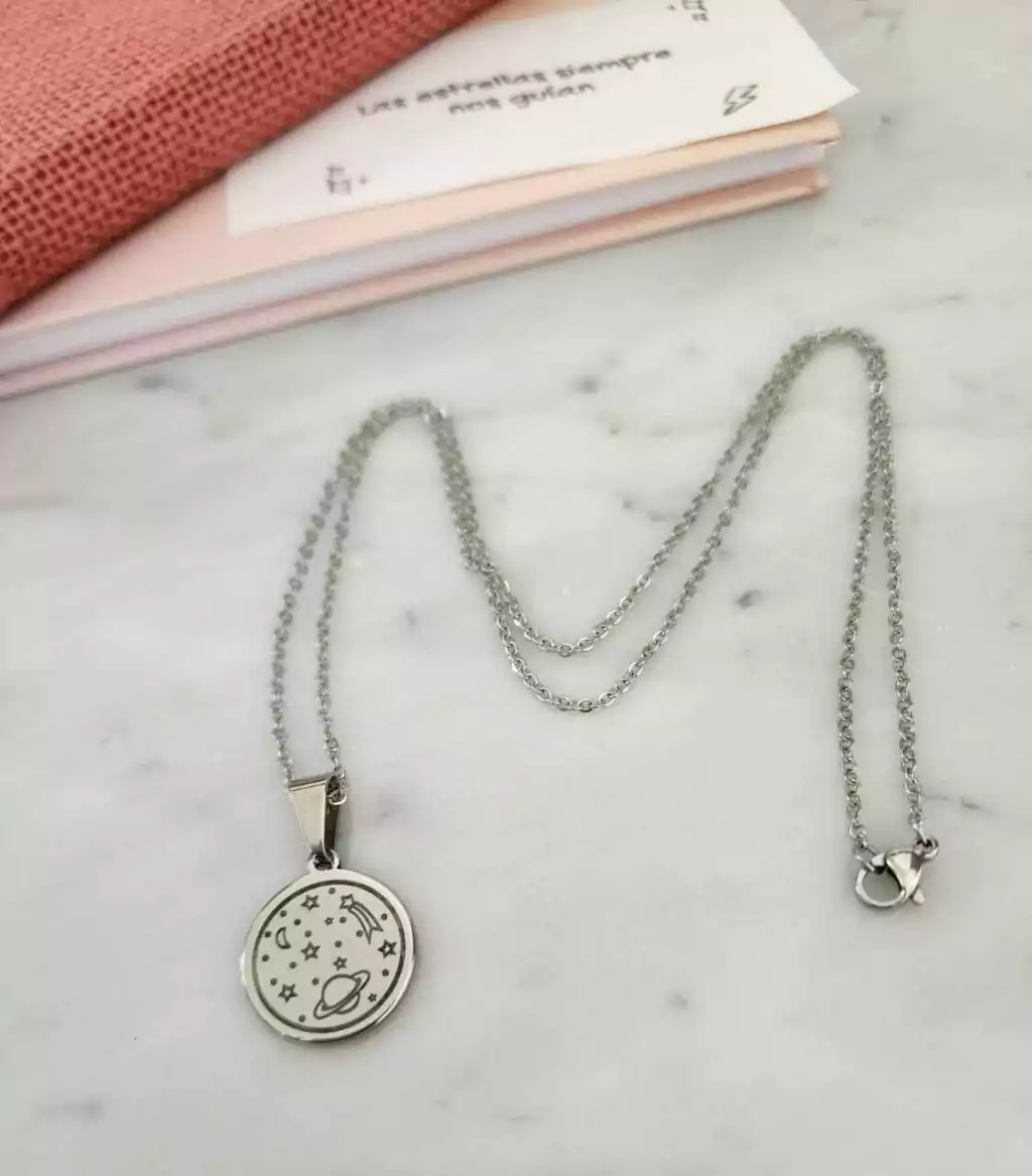 Collar largo de 60cm de largo con dije grabado a laser tambien de acero quirurgico