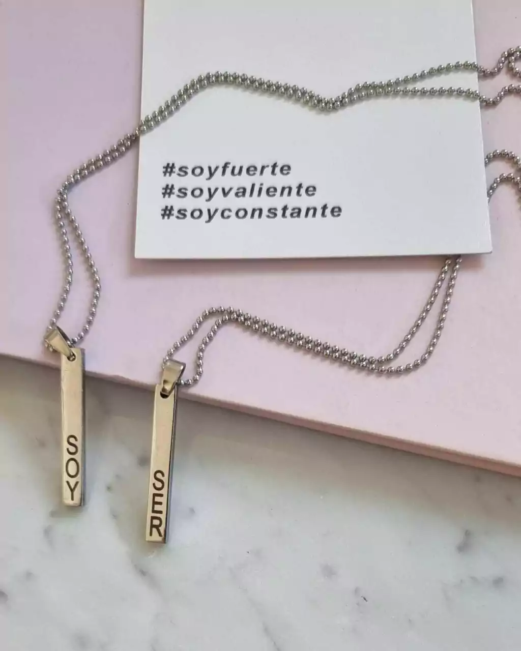 El dije tambien es de acero quirurgico de 3,5cm de largo, 0,5cm de ancho y 2cm de espesor. Es un rectangulito macizo precioso!