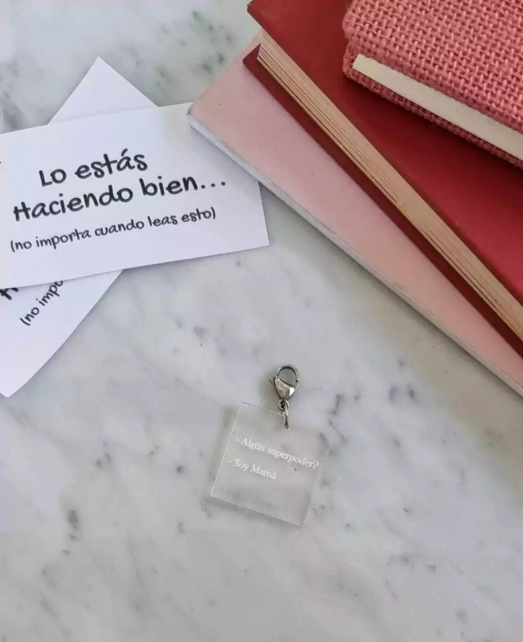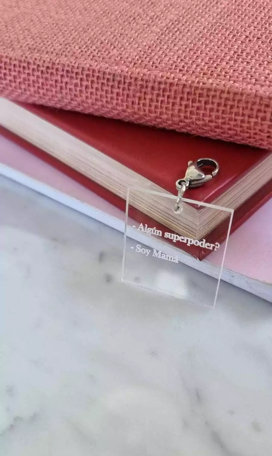 El dije es de acrilico grabado a laser, de 3x3cm. La argollita y el enganche son de acero quirurgico asi que no se te va a poner feo,