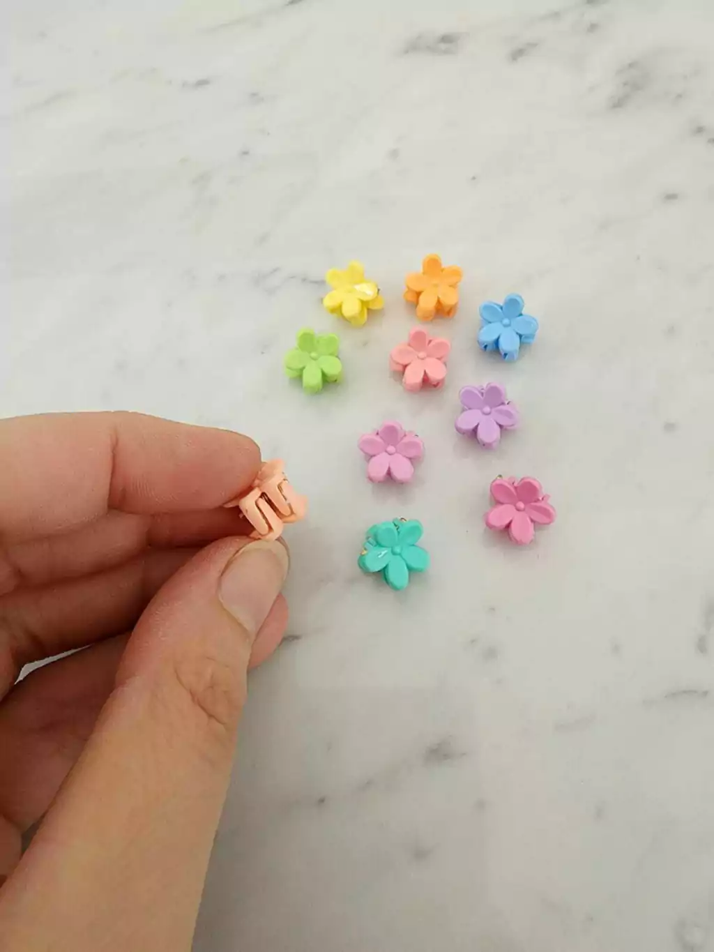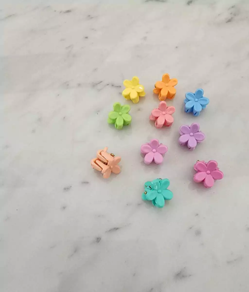 10 mini brochesitos bellos con forma de flor, colores surtidos en tono pastel