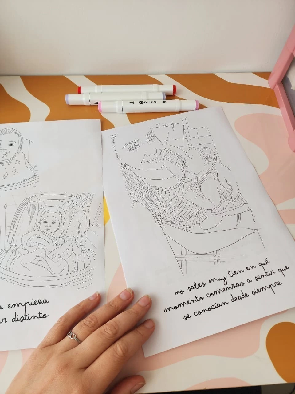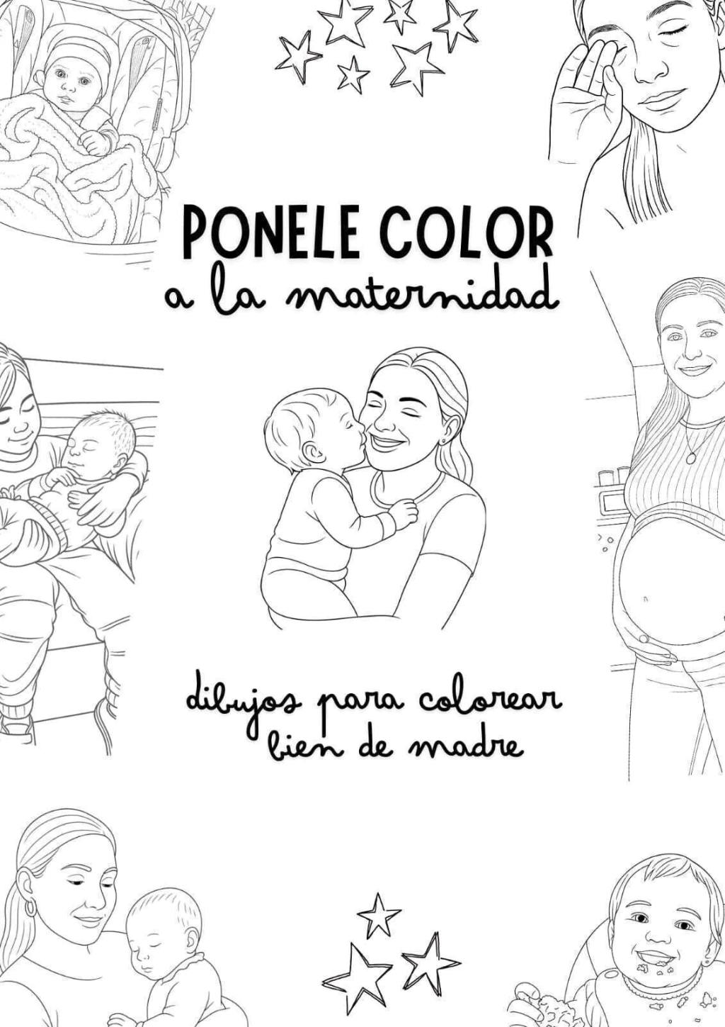 Dibujitos para colorear, hechos por mi, sobre la maternidad. Ese espacio tan ambiguo entre la felicidad, tristeza, alegria y tambien muichas lagrimas que es ser mamá!